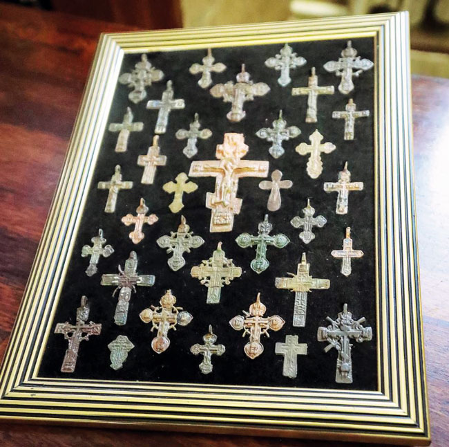 Эти нательные кресты, маленькие, полуистлевшие от времени иконки – в экспозиции военного музея при храме иконы Божией Матери «Всех скорбящих Радость» на Шпалерной улице. Большинство экспонатов были найдены поисковыми отрядами на останках погибших воинов. Но есть здесь и экспонаты, которые в храм приносили петербуржцы. На днях принесли ещё один уникальный экспонат, являющийся живым свидетельством того, что вера в годы блокады не иссякала. Это переписанные от руки акафисты, молитвы православным святым.