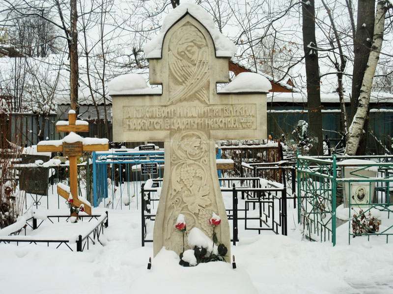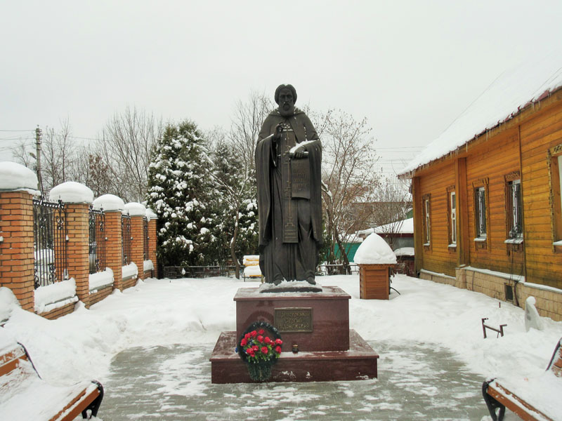 На территории Сретенского храма есть три важных памятника. Слева у входа паломника встречает скульптурное изображение преподобного Сергия Радонежского, напоминающее о старом богомольном пути в Троицкую Лавру. За алтарём с левой стороны стоит резной белокаменный крест над могилой известного богослова и проповедника XX века отца Александра Меня, который служил в этом храме последние двадцать лет жизни. К слову, Сретенский приход один из двух в Подмосковье, где особо чтут память отца Александра. Второй такой храм находится в посёлке Семхоз в Сергиевом Посаде. Он построен на месте гибели священника. Наконец, третий памятный знак – это мраморный крест с ликом прославленного в 2003 году новомученика протоиерея Алексия Введенского.