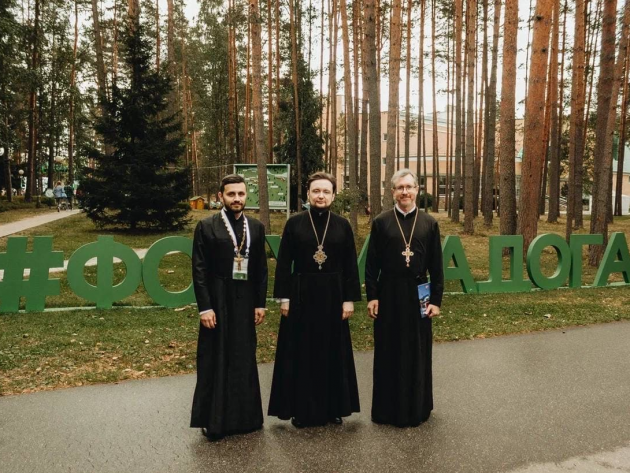 9 сентября на базе форума состоялась Божественная Литургия, которую возглавил председатель Отдела по делам молодёжи Санкт-Петербургской епархии протоиерей Константин Головатский. Ему сослужили председатель регионального отделения священник Геннадий Титов и председатель молодежного отдела Вологодской епархии священник Михаил Максимов.