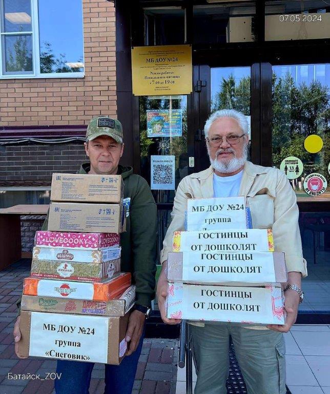 Руководитель волонтерской группы «Батайск-ZOV», действительный член ИППО Е. Терновых и действительный член ИППО С. Ендальцев практически каждую неделю выезжают в зону СВО, доставляя гуманитарные грузы. В День Победы они привезли на фронт гостинцы от детей, педагогов и родителей детского сада г. Батайска.