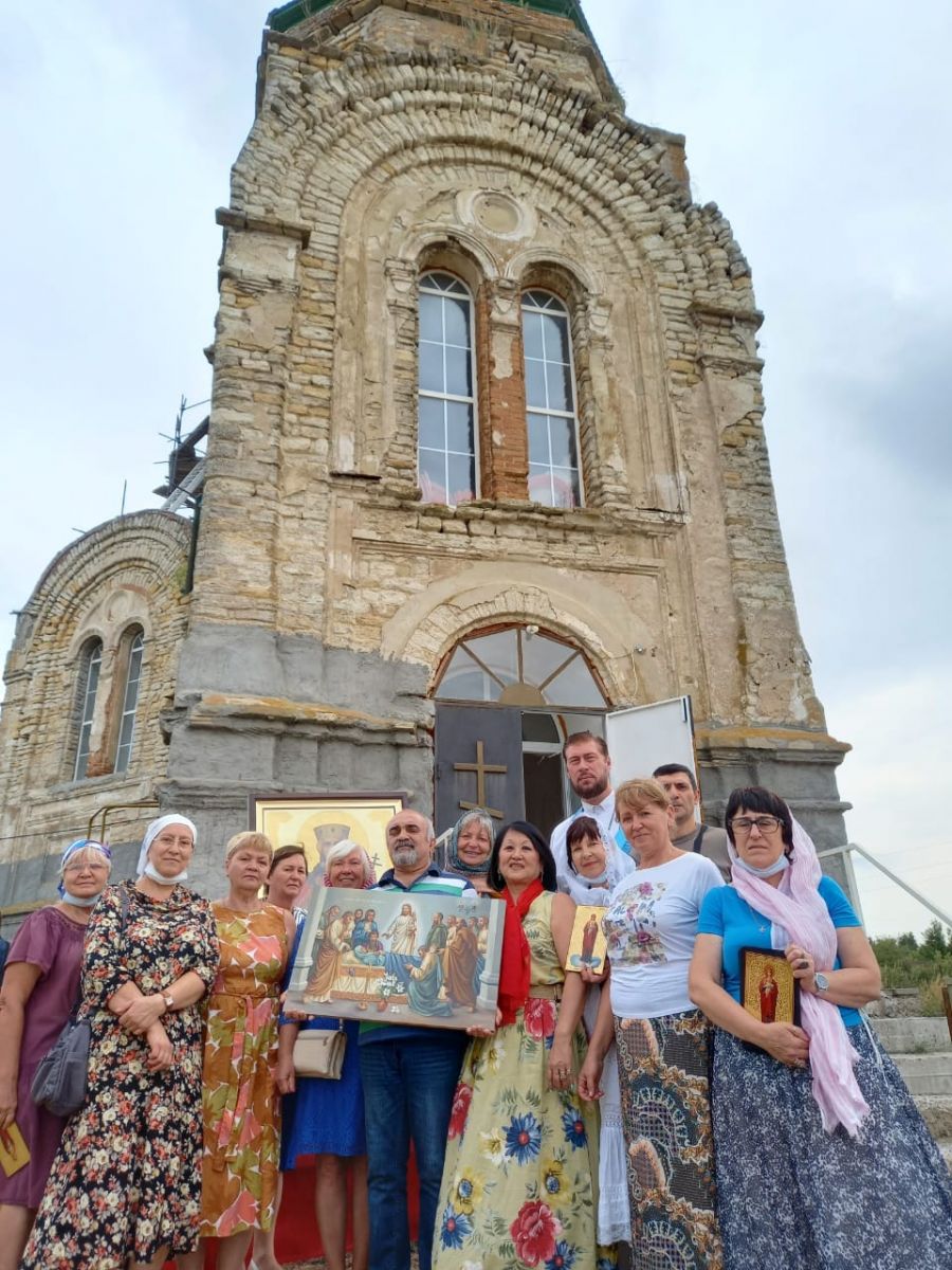 Праздничное богослужение в восстанавливаемом старинном храме совершил его настоятель, иеромонах Михаил (Владимиров). В дар храму паломники передали икону Успения Пресвятой Богородицы, которая была освящена перед совершением литургии. Дар приходу инициировали действительные члены ИППО от Ростовского отделения Елена Камышная, Людмила Лимаренко и Рубен Бекгулян.