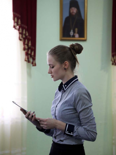 Студенты Института сферы обслуживания и предпринимательства (филиала) ДГТУ в г. Шахты, участники научного кружка «Православный Восток» кафедры православной культуры и теологиии (руководитель – старший преподаватель И. Г. Шарков) представили красочные презентации и рассказали об истории книгоиздания, от первых свитков и глиняных табличек до электронных книг (Анна Киселёва), о просветителях славян святых братьях Кирилле и Мефодии, о русском первопечатнике диаконе Иоанне Фёдорове (Алёна Троцкая). О значении электронных книг для современной молодёжи рассказал Евгений Напуда.