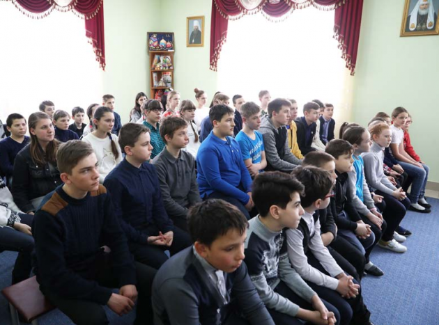 Просветительское мероприятие для школьников подготовили и провели Шахтинская епархия, кафедра православной культуры и теологии Института сферы обслуживания и предпринимательства (филиала) ДГТУ в г. Шахты при поддержке Шахтинского музыкального колледжа. Епархиальный духовно-просветительский проект собрал более 50 школьников 4-7 классов и педагогов. В этот день гостями Шахтинской епархии стала МБОУ СОШ №12 г. Шахты (директор – Светлана Глухова).