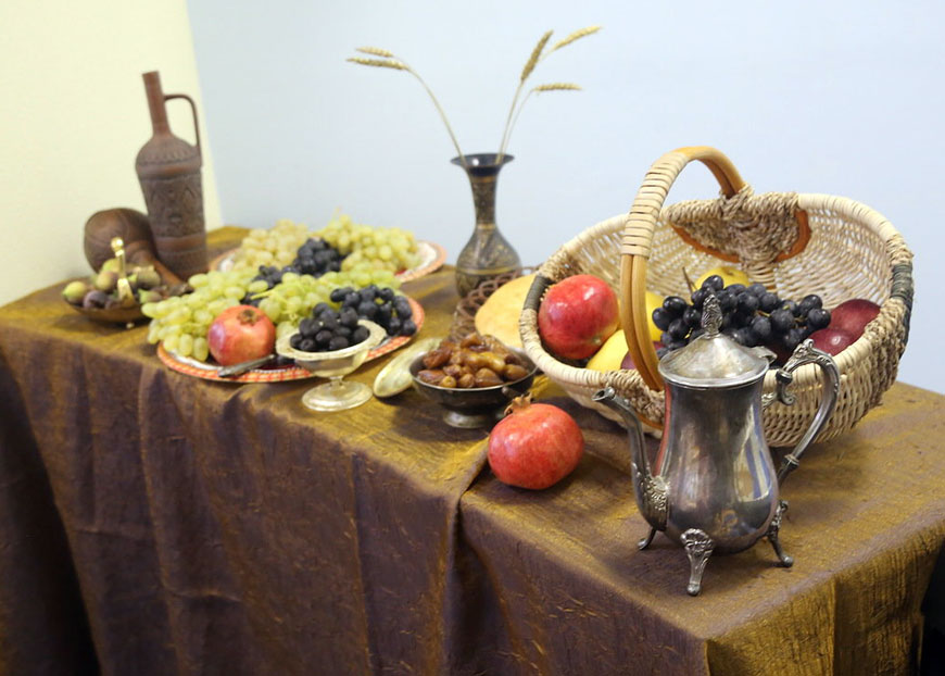 В аудитории членами студенческого научного кружка «Православный Восток» под руководством действительного члена ИППО Ильи Шаркова были подготовлены две тематические инсталляции «Библейские плоды» и «Священные благовония Востока».