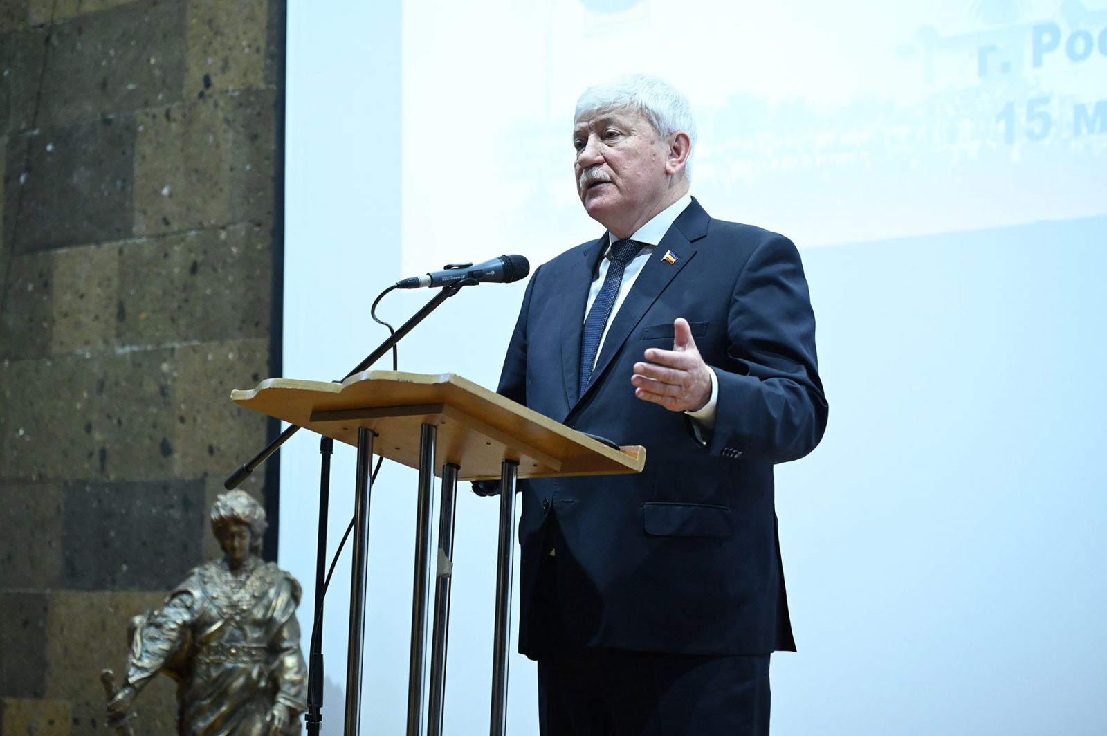 Приветственное слово Главы Администрации г. Ростова-на-Дону Алексея Логвиненко огласила председатель комитета по национальным вопросам, религии, казачеству Администрации г. Ростова-на-Дону Юлия Акинина. Приветственные слова руководителей ИППО от ряда региональных и зарубежных отделений и представительств ИППО огласила Председатель Ростовского регионального отделения ИППО Людмила Лимаренко. В формате видеоприветствия от лица Екатеринбургского отделения ИППО к собравшимся обратился член Общественной палаты Свердловской области, генеральный директор Свердловского областного краеведческого музея им. О. Е. Клера Александр Емельянов.
