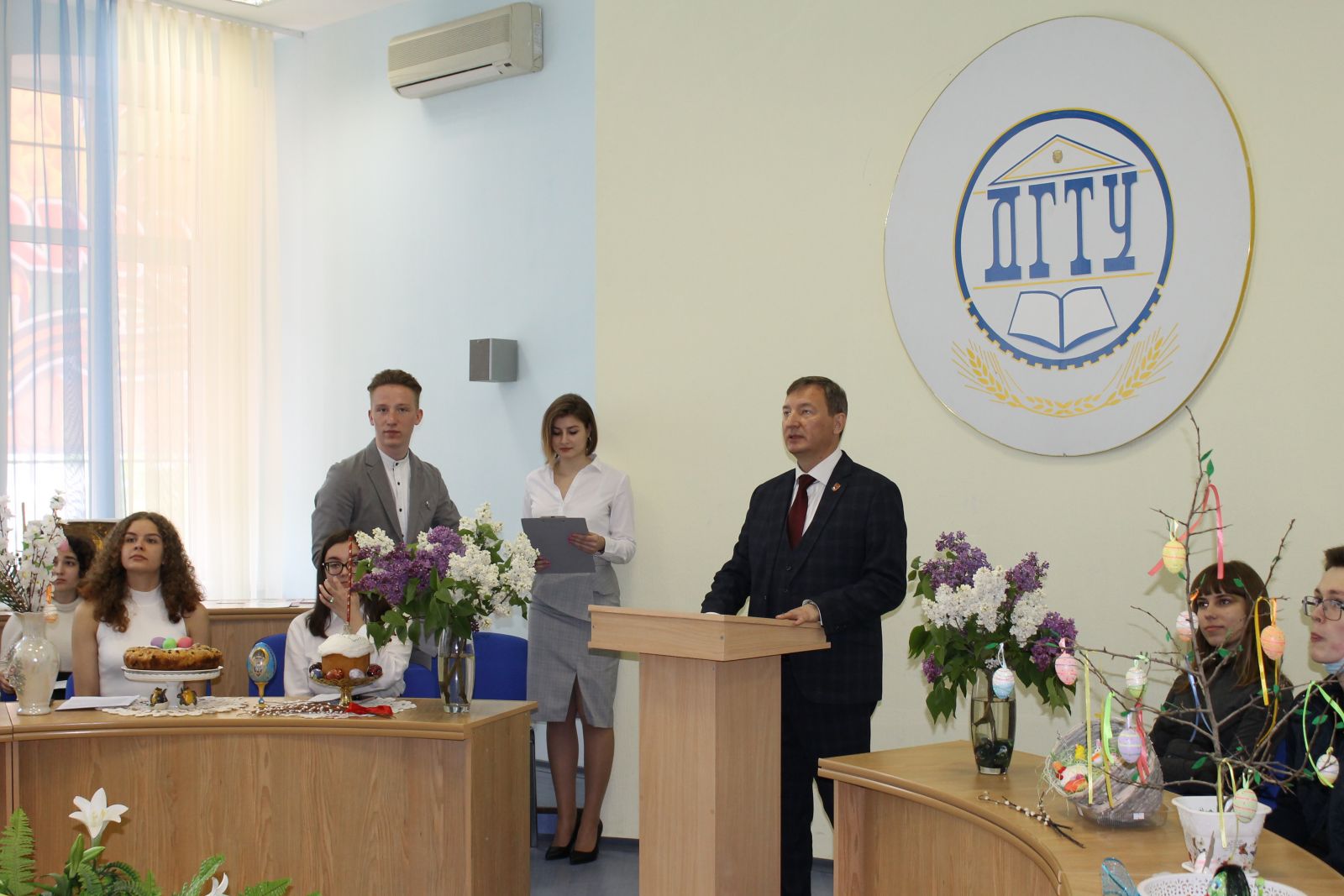 В аудитории с большим круглым столом была подготовлена и оформлена выставка творческих работ студентов, сотрудников, преподавателей института. Был представлен ряд работ: пасхальные композиции, инсталляции, кулинарные сюрпризы, декорированные пасхальные яйца и букеты. Итоги конкурса подводило жюри в составе преподавателя Шахтинского музыкального колледжа Юлии Юрьевны Коваленко, сотрудника ИСОиП (филиала) ДГТУ Светланы Некрушец, старшего администратора отдела воспитательной и социальной работы института Александра Павловича Кривоусова, студенки факультета «Техника и технологии» Ксении Тертыченко.
