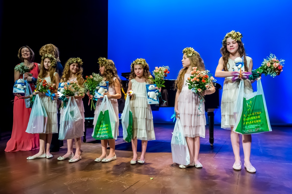 По окончании торжественной части вечера на сцену вышли участницы детского музыкального ансамбля "Стрекоза" (художественный руководитель - Ксения Баркова), которые исполнили рождественский гимн "Тихая ночь" (Ф. Грубер), а также произведения В.-А. Моцарта, Л. Денцы, С. Гаврилова.