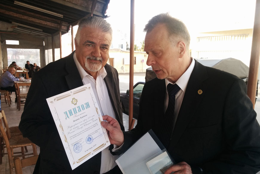 Руководитель Кипрского отделения ИППО вручил медали «Через 100 лет ИППО возвращается с паломничеством Россия – Кипр – Святая Земля»