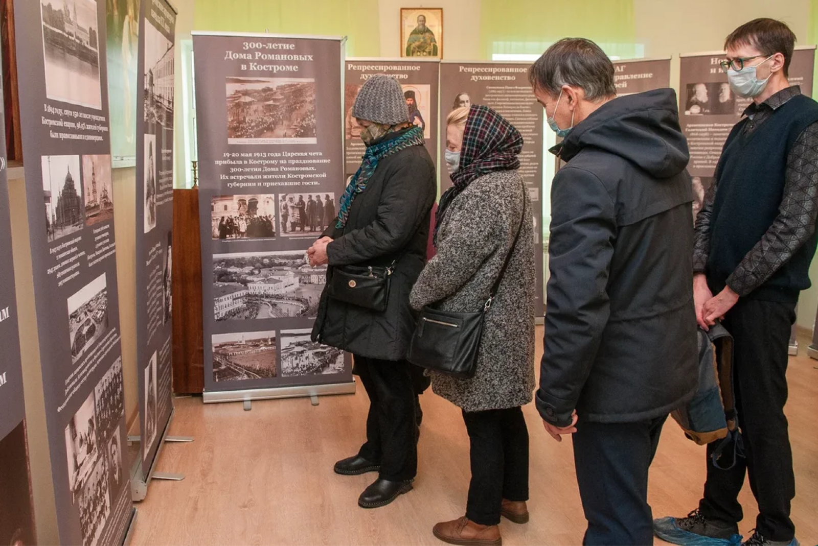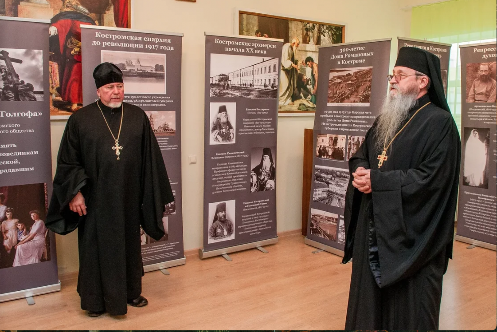 Выставка «Костромская Голгофа» была создана Костромским церковно-историческим обществом в 2017 году по благословению Главы Костромской митрополии, митрополита Костромского и Нерехтского Ферапонта выставка «Костромская Голгофа» создана Костромским церковно-историческим обществом в 2017 году. В 2019 году она была переработана и дополнена. Ранее она демонстрировалась в Костромской духовной семинарии, в воскресной школе при Свято-Тихоновском храме Костромы, а также в восьми общеобразовательных школах Костромы (№№ 4, 6, 13, 26, 29, 34, 35, 41), в Костромском Государя и Великого князя Михаила Федоровича кадетском корпусе, в Костромской областной универсальной научной библиотеке, школе №1 города Нерехты и Нерехтском краеведческом музее.
