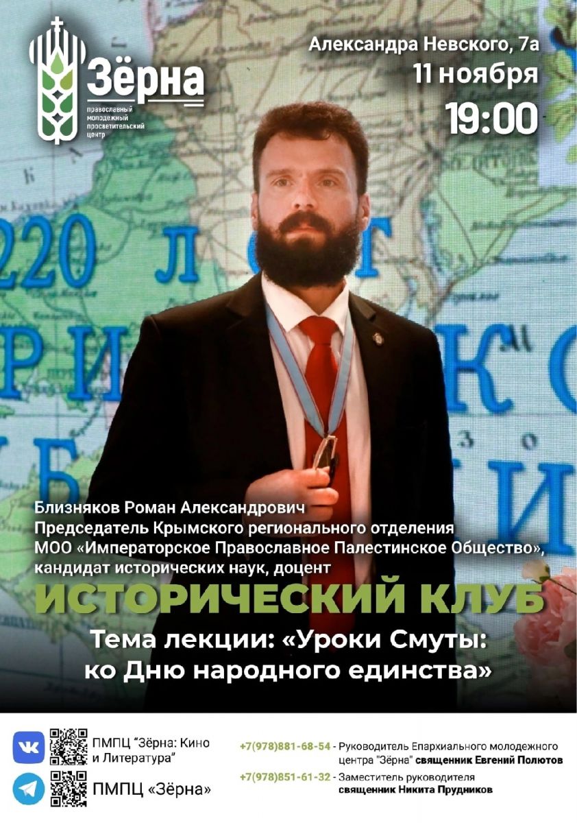 Руководитель Крымского отделения ИППО Роман Близняков стал ведущим исторического клуба в православном молодёжном центре