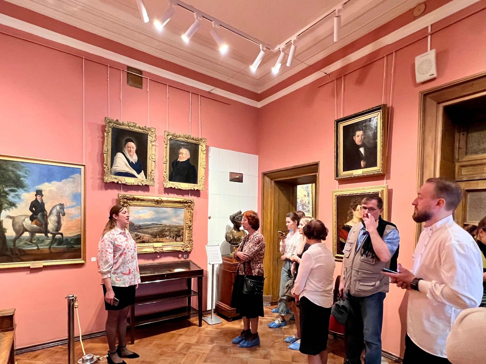 Далее члены ИППО направились в Серпуховский Историко-художественный музей, где осмотрели выставку «Юсуповы. Род, история, коллекция», на которой впервые в стенах регионального музея представлено около 400 предметов из собрания Государственного музея-заповедника «Архангельское». Большую часть этого собрания составляют художественные коллекции, книги и бытовые предметы, принадлежавшие до 1918 г. князьям Юсуповым и составлявшие внутреннее убранство усадьбы Архангельское — их подмосковной резиденции, превращенной в 1919 г. в музей. Стоит отметить, что Архангельское посещали и Первые Председатели ИППО - Великий князь Сергей Александрович и Великая княгиня Елизавета Феодоровна.