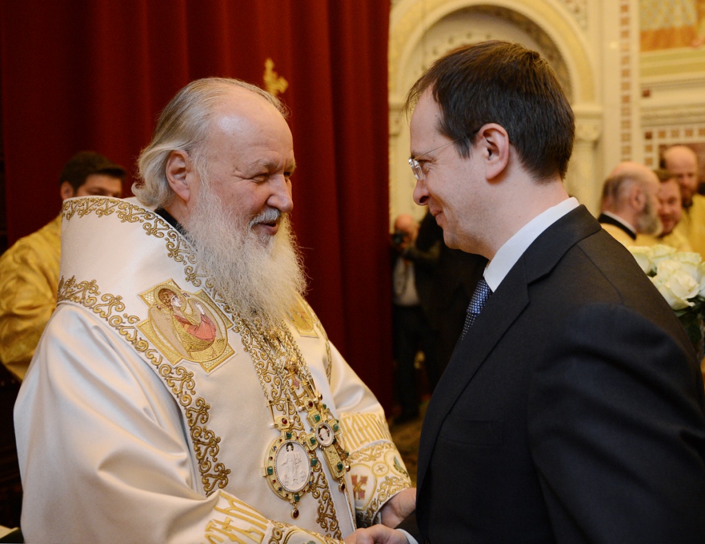 20 ноября Президент России Владимир Путин приехал в Храм Христа Спасителя и тепло поздравил Святейшего Патриарха с днем рождения. Глава государства преподнес Предстоятелю Русской Православной Церкви букет цветов и подарок - федоскинскую шкатулку с изображением Успенского Собора Троице-Сергиевой Лавры.