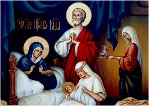 Из Евангелия мы узнаём только основные, самые главные события жизни Богородицы, но там не сказано ни об обстоятельствах Её рождения, ни о дальнейшей Её жизни. Эти подробности доносит до нас церковное предание, то есть древние сказания, церковно-исторические сочинения, тексты церковной службы. Родителей Пресвятой Богородицы, Иоакима и Анну, Церковь называет «богоотцами». Иоаким был потомком царя Давида, Анна происходила из рода первосвященника Аарона. Они вели жизнь праведную и благочестивую. Предание говорит о том, что для себя они оставляли только третью часть доходов – остальное раздавали нуждающимся и жертвовали на храм. Достигнув преклонных лет, супруги оставались бездетными. Следует сказать, что бесчадие считалось в еврейском народе наказанием за грехи, и потому Иоаким и Анна терпели несправедливые обвинения в тайных грехах. И когда Иоаким в один из праздников пришёл в храм для принесения жертвы Богу, первосвященник отказал ему, поскольку Иоаким «не создал потомства для Израиля».
