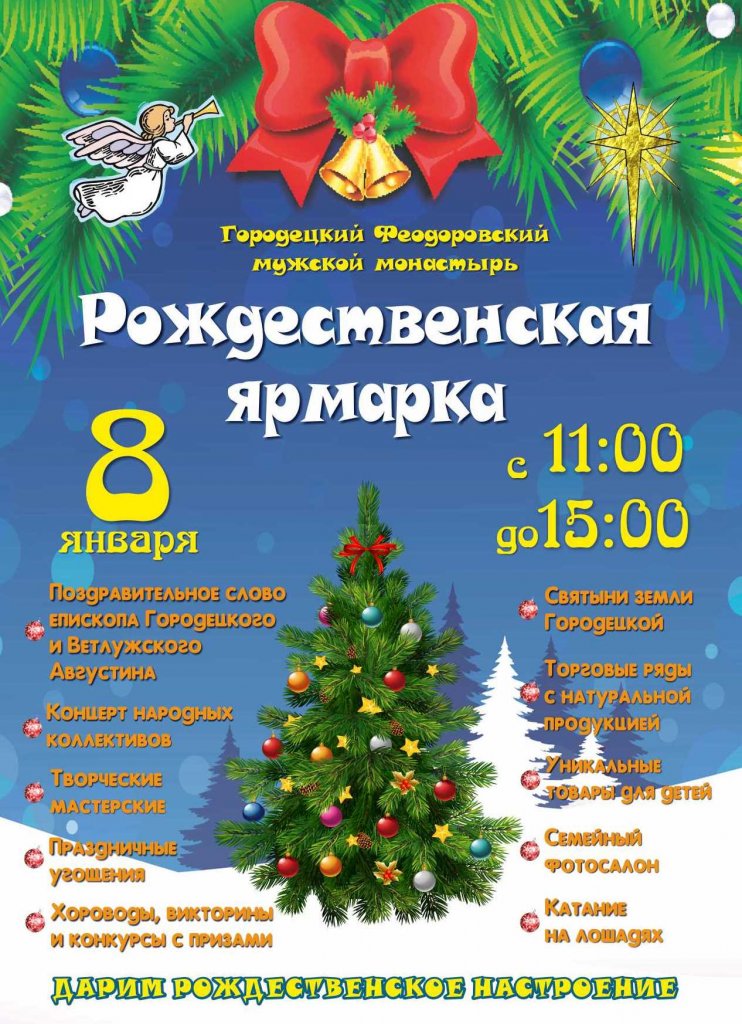 8 января в 11.00 на территории старейшего в Нижегородской области монастыря - Городецкого Феодоровского мужского монастыря- откроется традиционная «Рождественская ярмарка».