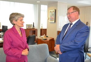 - Россия готова тать активным участником таких программ. Хорошо известна наша позиция по сохранению и защите мирового культурного наследия, прежде всего в зонах конфликтов, где сегодня варварски расхищаются и уничтожаются уникальные памятники культуры. Ценим большой вклад ЮНЕСКО в выполнение инициированной Россией резолюции Совета Безопасности ООН, где был закреплен запрет на торговлю древностями и культурными ценностями, - отметил в своем выступлении Президент России.
