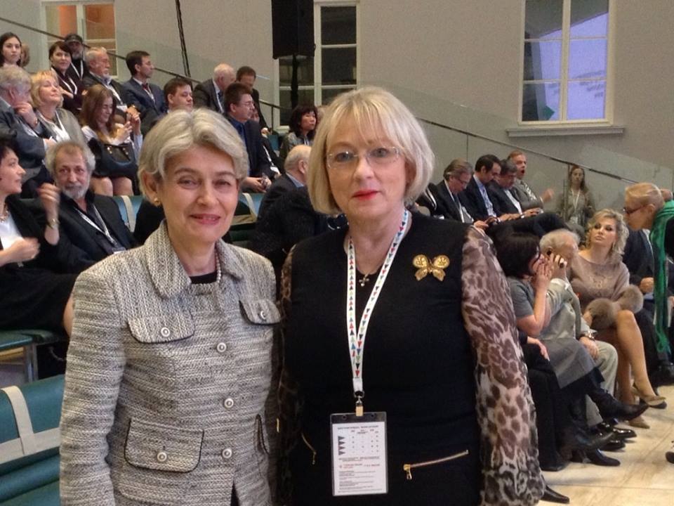 Перед началом мероприятия Председатель ИППО Сергей Степашин и Елена Агапова имели краткую беседу с Гендиректором ЮНЕСКО Ириной Боковой и обсудили перспективные направления сотрудничества ИППО с этой международной организацией. Госпожа Бокова еще раз подтвердила намерение ЮНЕСКО развивать сотрудничество с Императорским Православным Палестинским Обществом на важнейшем направлении – сохранение и защита культурных ценностей на Ближнем Востоке. Это свидетельствует об авторитете и международном признании старейшей в России неправительственной организации.