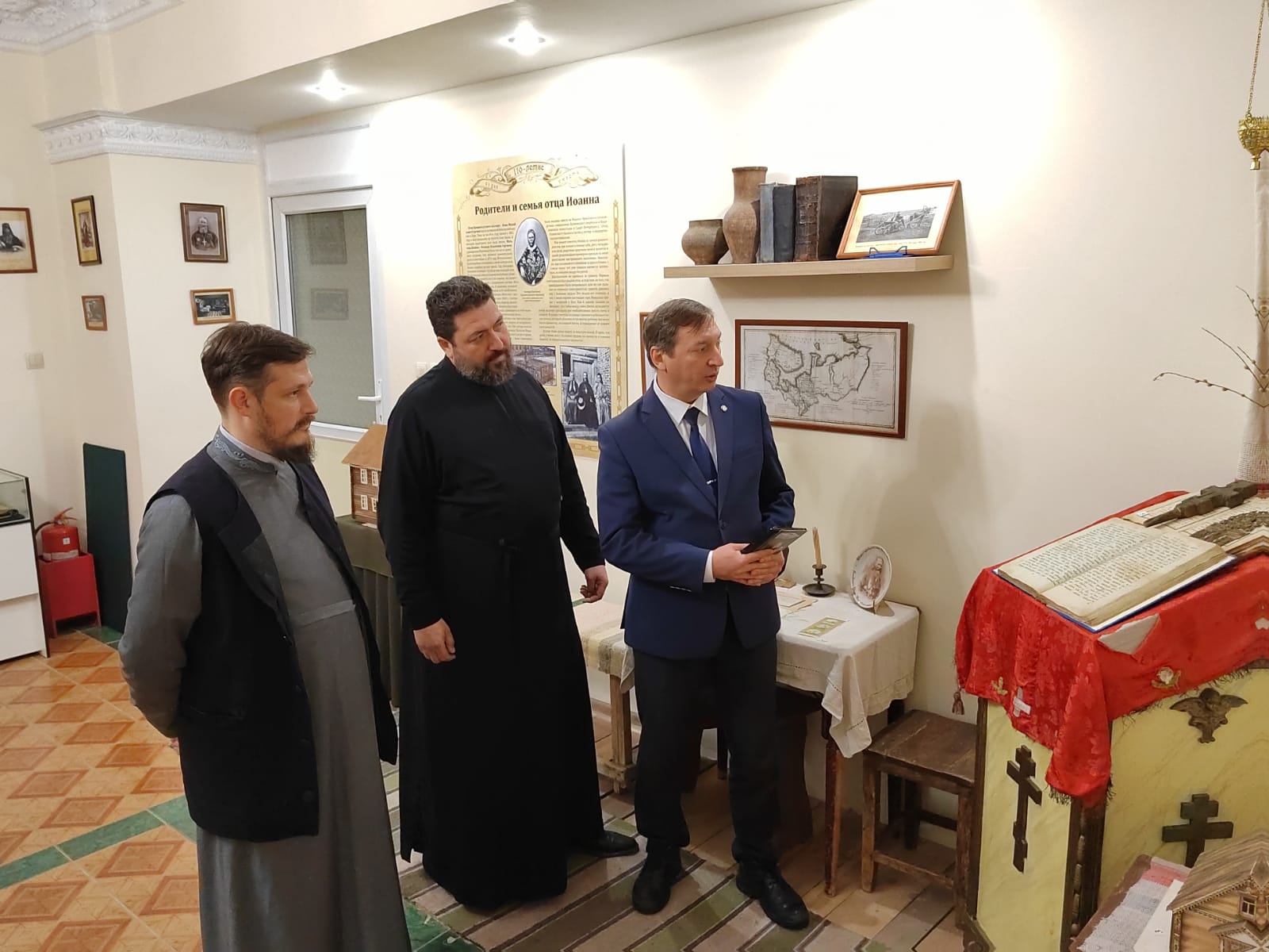 В рамках совещания состоялось посещение епархиальными древлехранителями прихода во имя святого праведного Иоанна Кронштадтского г. Ростова-на-Дону и его уникального для региона музея, расположенного в крипте храма. Настоятель Иоанновского храма иерей Владислав Паланчев рассказал епархиальным древлехранителям об истории создания приходского музея, об эпизодах служения отца Иоанна, который посещал Ростов-на-Дону в 1893 и в 1897 годах, и о том, как сегодня сохраняется память о праведном пастыре.