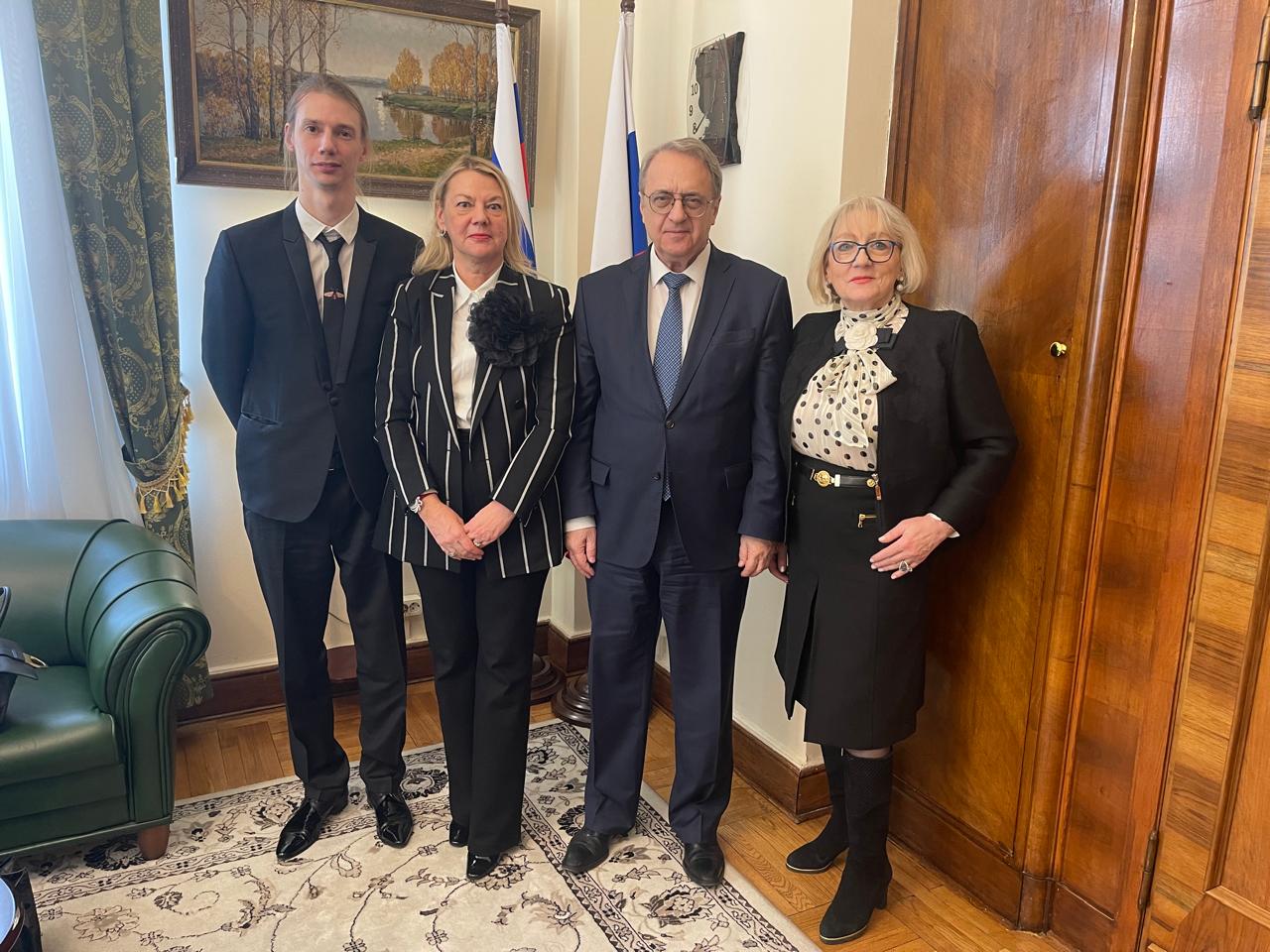 Михаил Леонидович Богданов живо интересуется историей, связанной с жизнью и деятельностью братьев Нобелей в России, он посещал могилу Людвига Нобеля в Санкт-Петербурге, который завещал быть похороненным в России. Елена Агапова и Анная Яковлева поблагодарили Михаила Богданова за всемерную поддержку деятельности Фонда Людвига Нобеля и пожелали ему больших успехов на сложном дипломатическом фронте.