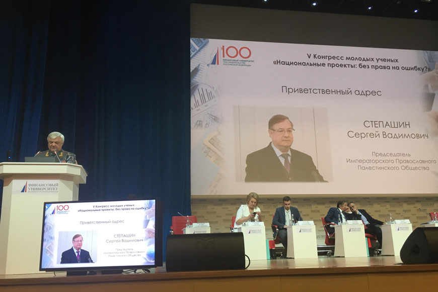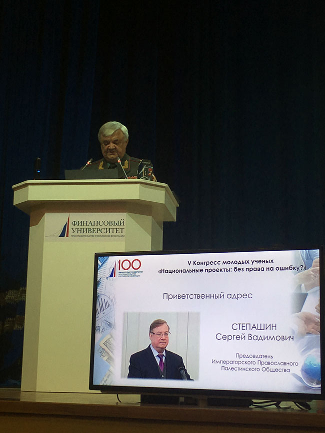 От имени старейшей Российской международной общественной организации «Императорское Православное Палестинское Общество» сердечно приветствую участников и гостей V Конгресса молодых учёных Финансового университета.