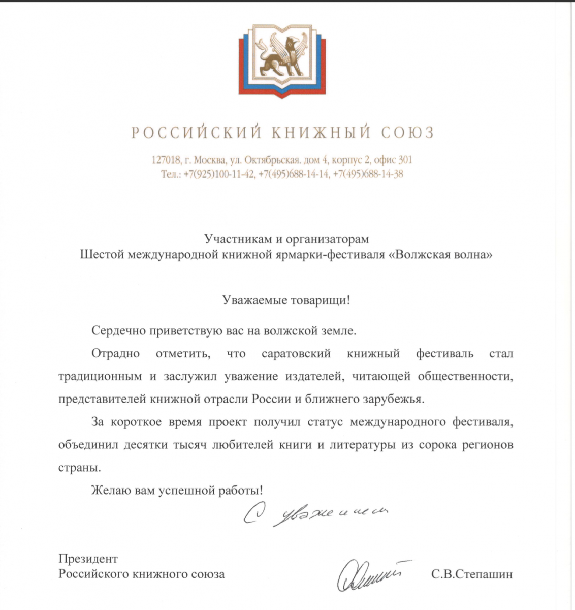 Сергей Степашин направил приветствие участникам и организаторам VI Международной книжной ярмарки-фестиваля «Волжская волна»