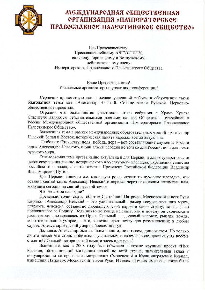 По благословению Святейшего Патриарха Московского и всея Руси Кирилла в рамках XXIХ Международных образовательных чтений «Александр Невский: Запад и Восток, историческая память народа», с целью трансляции положительного опыта миссионерской деятельности, состоится секция, организуемая Городецкой епархией.