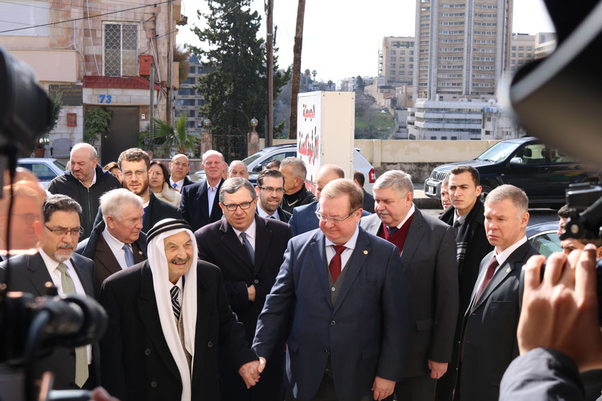 В ходе рабочего визита на Ближний Восток Председатель ИППО Сергей Степашин принял участие в церемонии открытия Иорданского отделения ИППО. Его сопровождают члены Совета ИППО: заместитель директора Департамента Ближнего Востока и Северной Африки Министерства иностранных дел Российской Федерации, Чрезвычайный и Полномочный посланник 2 класса Александр Рудаков, сопредседатель Российского комитета солидарности с народами Ливии и Сирии Олег Фомин, руководитель Вифлеемского отделения ИППО Дауд Матар.