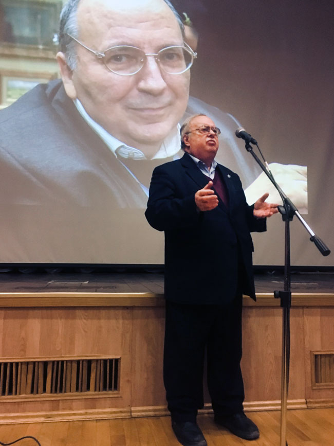 Затем выступил Почётный член ИППО, директор Института российской истории РАН Юрий Петров. Он отметил, что Николай Лисовой один из немногих сумел соединить науку и религию. «Владение словом – это ярчайшая черта его таланта, и деятельность Николая Николаевича в ИППО шла рука об руку с созданием нового научного направления – исследования русского присутствия России на Святой Земле», – подчеркнул Юрий Петров.