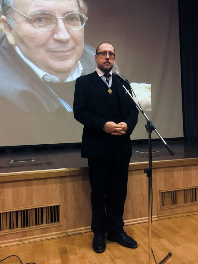 Далее секретарь Отдела внешних церковных связей Московского Патриархата иерей Димитрий Сафонов отметил высокий духовный и нравственный образ Николая Лисового и подчеркнул, что рад называть Николая Николаевича своим учителем.