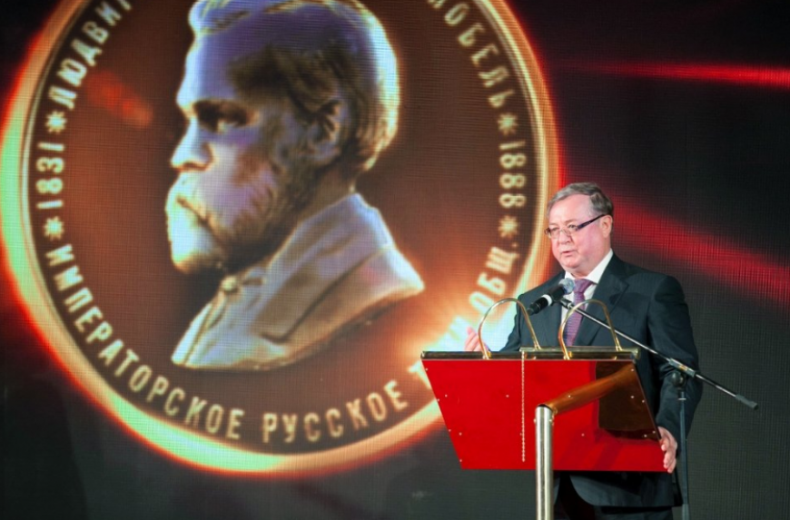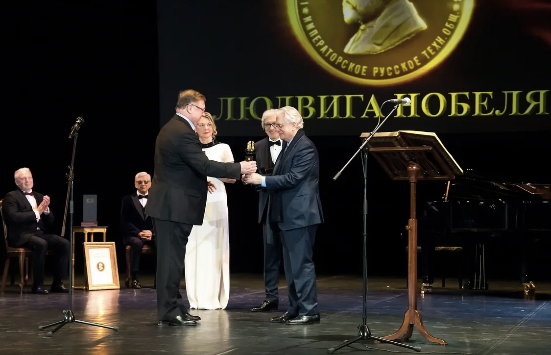 С.В Степашин тепло поздравил лауреата и вручил ему памятную медаль Людвига Нобеля, изготовленную по эскизам 1888 года, а также почетный знак лауреата.