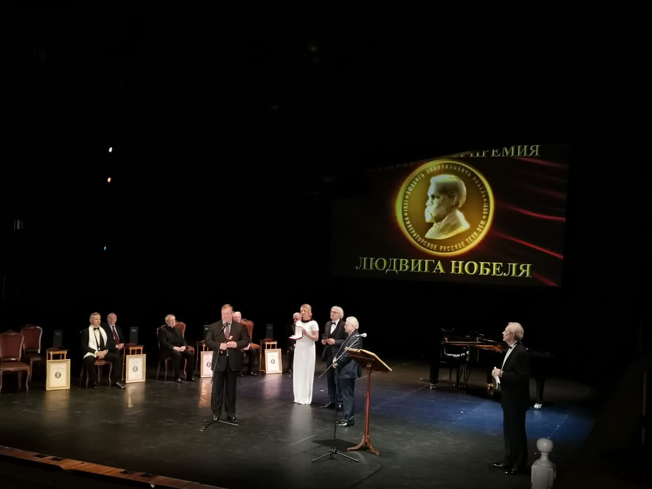 Ровно в 18:00 под звуки фанфар на сцену Эрмитажного театра поднялись Евгений Лукошков, Анна Яковлева и лауреаты премии Людвига Нобеля: известный государственный и общественный деятель, Председатель ИППО Сергей Степашин, директор Всероссийского музея А.С. Пушкина Сергей Некрасов.