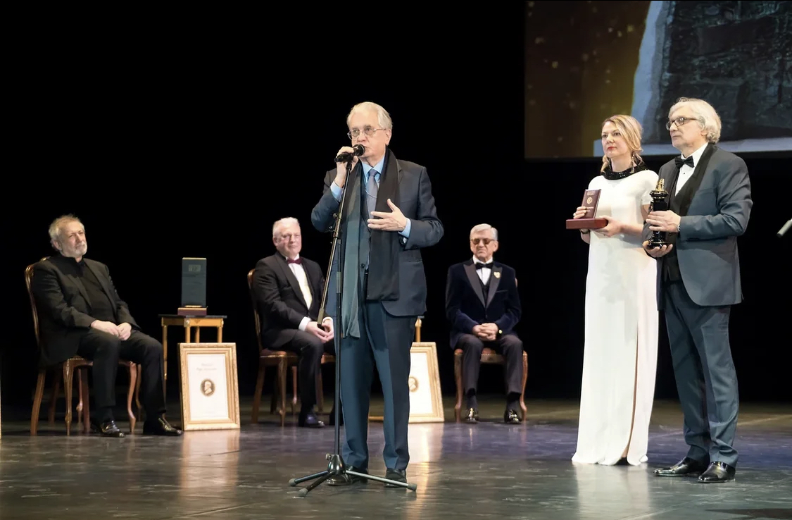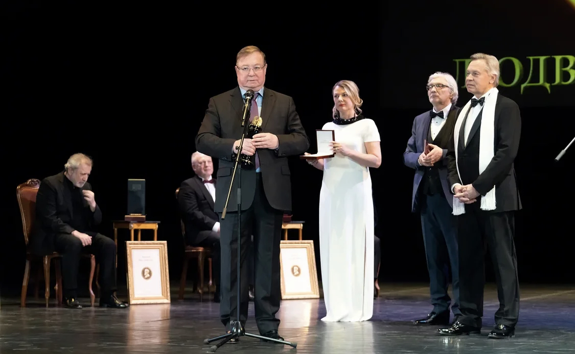 В свою очередь, лауреат премии Людвига Нобеля, действительный член ИППО Сергей Некрасов вручил премию лауреату Государственных премий, кавалеру Ордена "За заслуги перед Отечеством" IV, III и II степени, народному артисту России, известному хореографу Борису Эйфману и профессору, доктору наук, ректору Санкт-петербургского экономического университета Игорю Максимцеву.