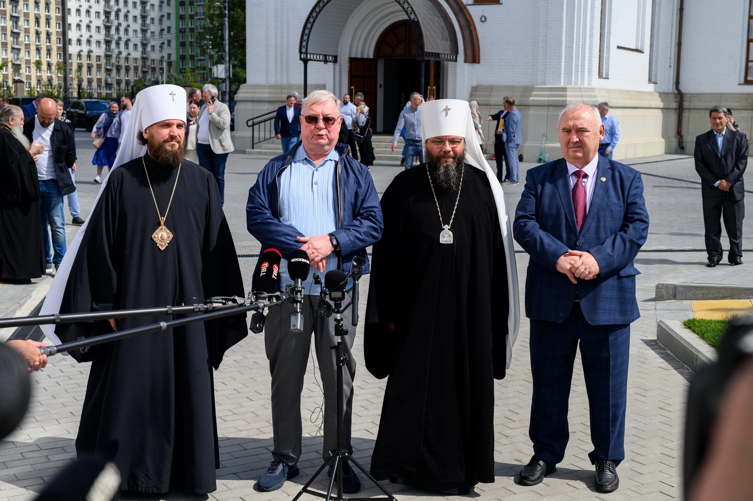 По окончании Литургии митрополит Арсений поприветствовал Владыку Матфея и всех богомольцев с Воскресным днем и обратился к собравшимся с проповедью. Затем митрополит Арсений обратился к собравшимся с Архипастырским словом. В ответном слове митрополит Матфей поблагодарил управляющего Северо-Восточным викариатством за радость совместного евхаристического общения, а также выразил слова благодарности всем строителям и благоукрасителям храма.