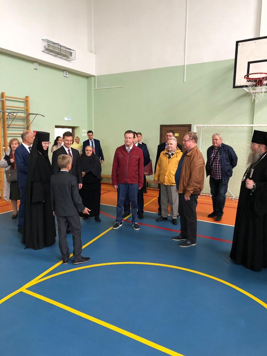 Председателя ИППО по старой русской традиции гимназисты встретили с караваем. Православная гимназия преподобного Илии Муромца оборудованна современными и просторными учебными классами, большим спортзалом и столовой, библиотекой, где собраны уникальные книги православной тематики.