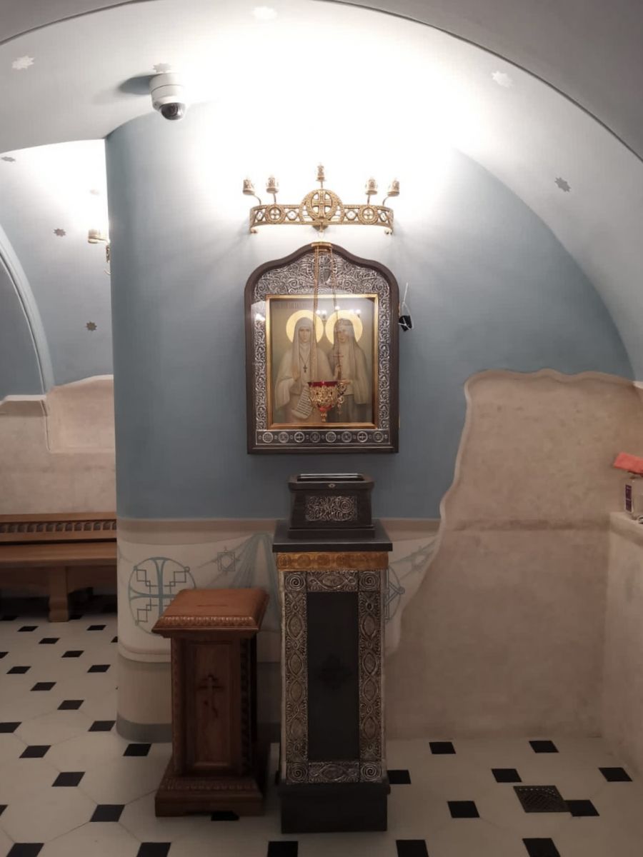 В храме хранятся частицы мощей преподобномучениц Великой княгини Елисаветы и инокини Варвары (1918 г.). В 2020 году на территорию монастыря их доставил митрополит Берлинский и Германский Марк.