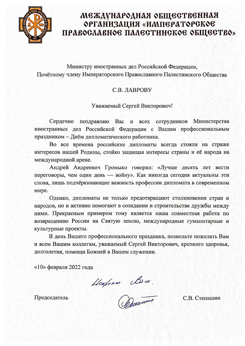 Сергей Степашин поздравил представителей Министерства иностранных дел РФ с профессиональным праздником, пожелал успехов в ответственном служении во благо России и поблагодарил за сотрудничество.