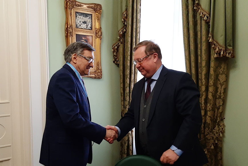 Председатель ИППО Сергей Степашин поздравил Льва Зиновьевича с юбилеем. Сергей Вадимович пожелал крепкого здоровья, благополучия, творческих успехов и свершений на благо Отечества.