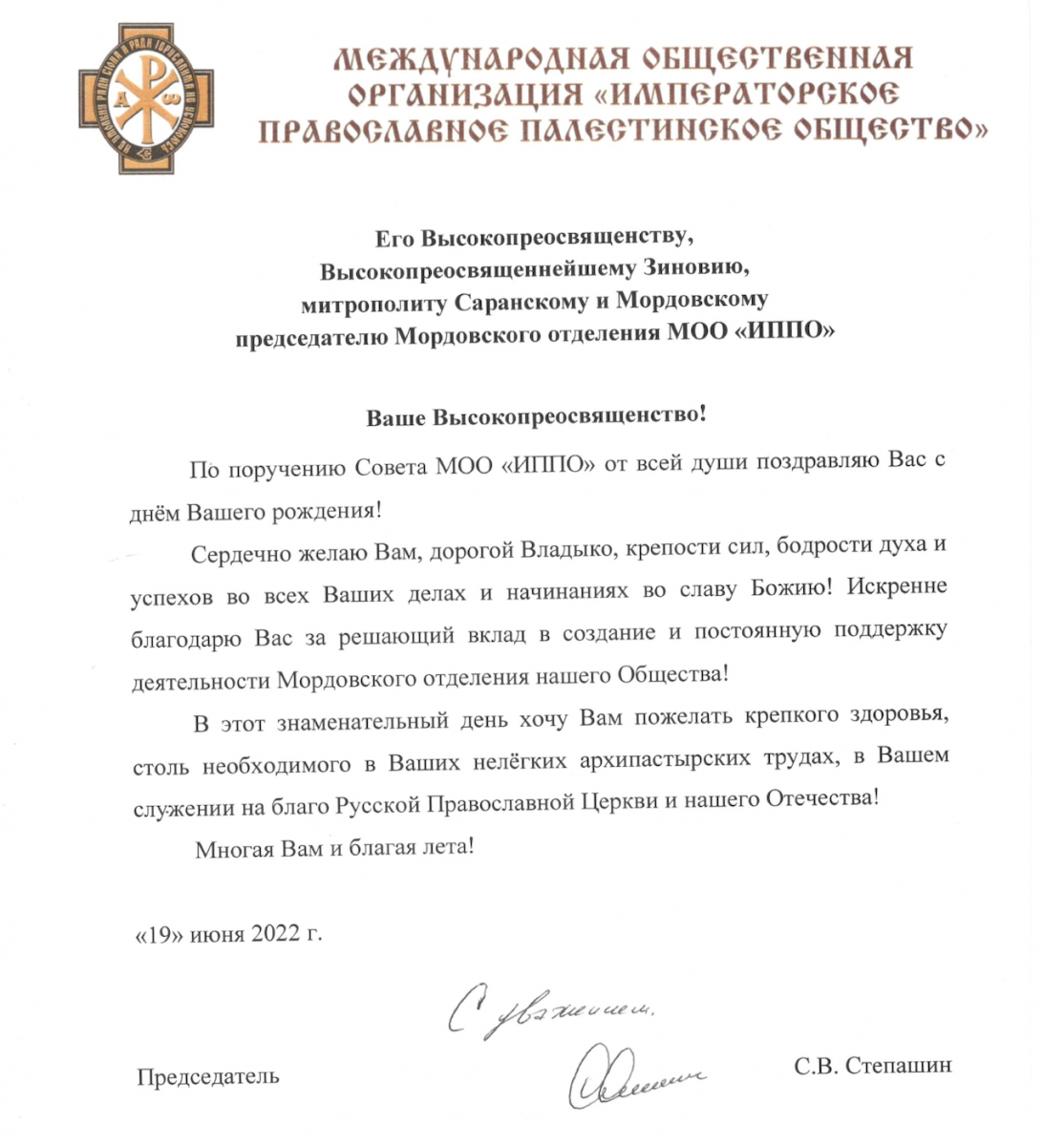 19 июня день рождения отмечает председатель Комитета Почётных членов Мордовского отделения ИППО митрополит Саранский и Мордовский Зиновий.