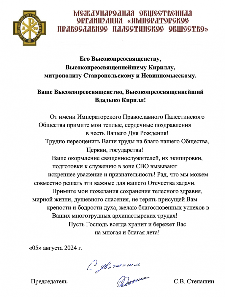5 августа день рождения отмечает председатель Синодального отдела по взаимодействию с Вооруженными силами и правоохранительными органами, председатель Синодального комитета по взаимодействию с казачеством, председатель Попечительского совета Ставропольского отделения ИППО митрополит Ставропольский и Невинномысский Кирилл.