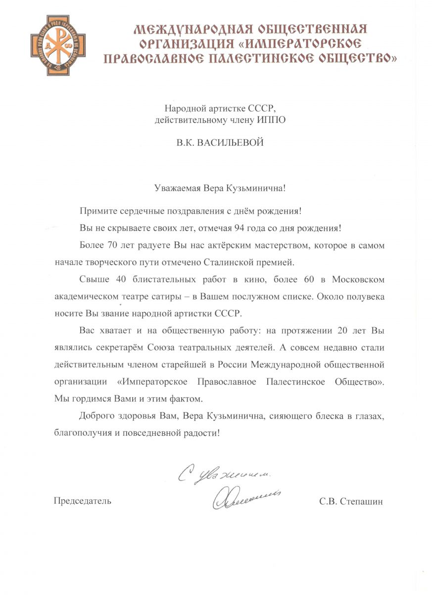 Сегодня день рождения у Народной артистки СССР, действительного члена ИППО Веры Васильевой. Сергей Степашин поздравил Веру Кузьминичну с 94-летием.