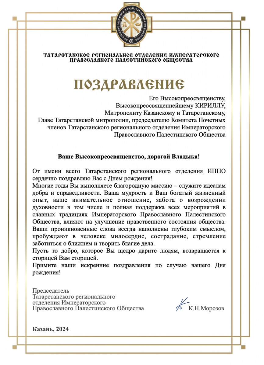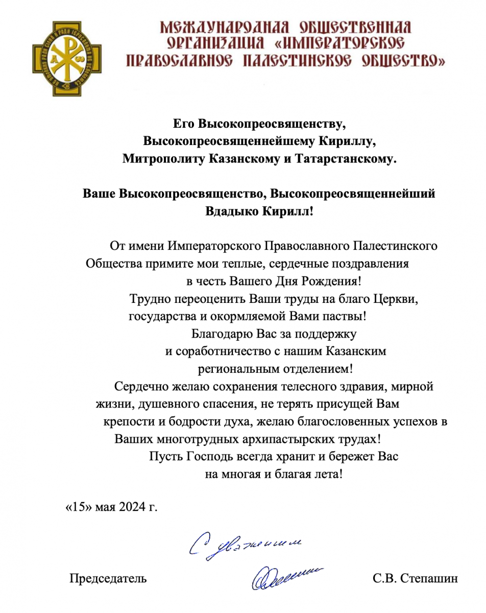 15 мая день рождения отмечает Почетный член Императорского Православного Палестинского Общества митрополита Казанского и Татарстанского.