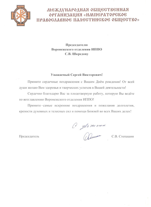 Председатель ИППО Сергей Степашин направил поздравление Сергею Викторовичу.