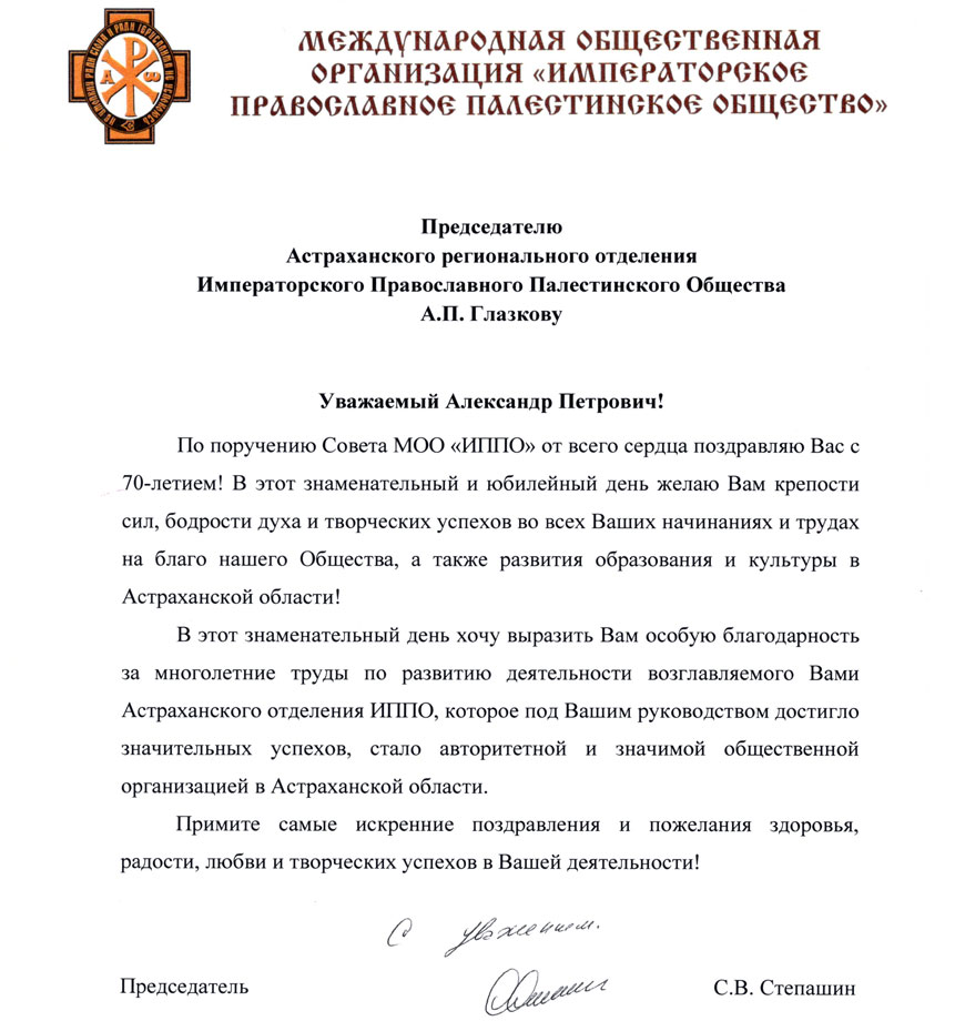 5 февраля день рождения отмечает руководитель Астраханского отделения Императорского Православного Палестинского Общества Александр Глазков.
