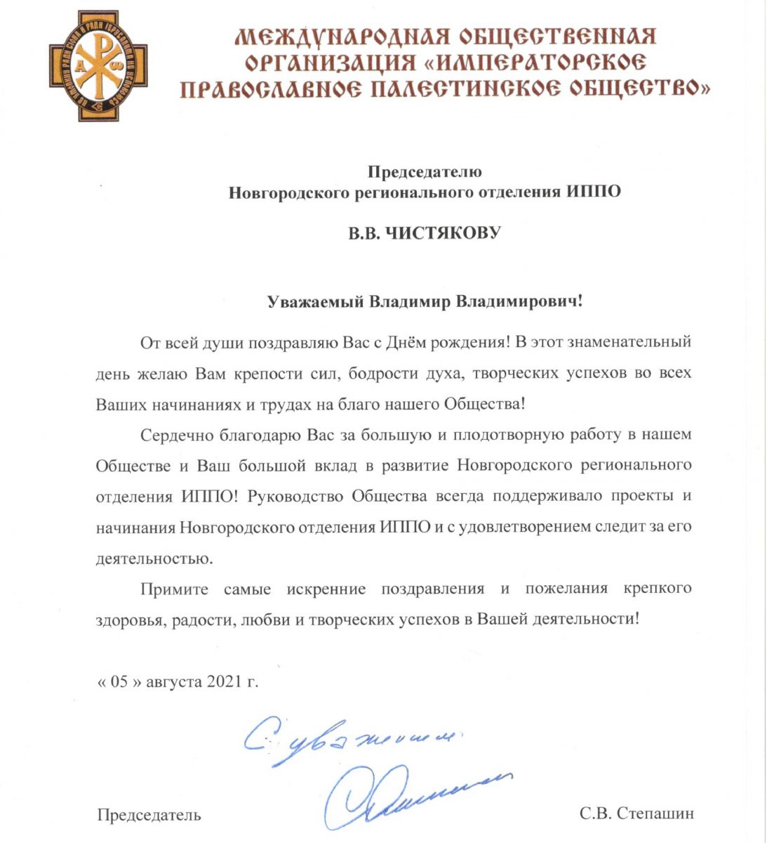 5 августа день рождения отмечает руководитель Новгородского отделения Императорского Православного Палестинского Общества Владимир Чистяков.