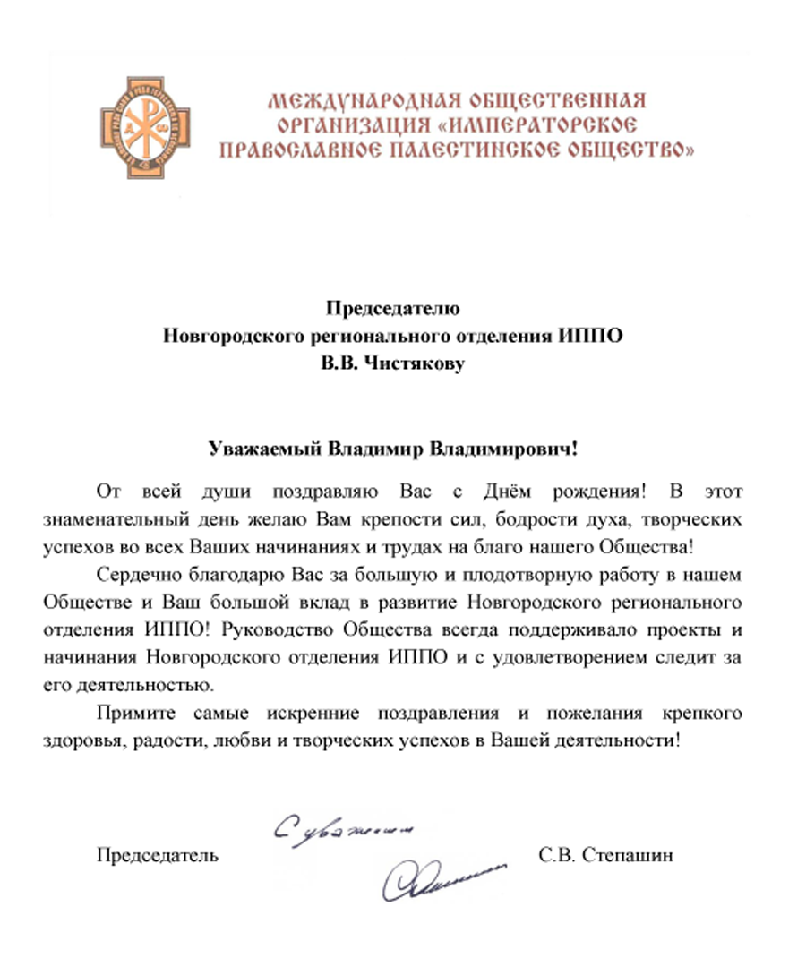 5 августа день рождения отмечает руководитель Новгородского отделения Императорского Православного Палестинского Общества Владимир Чистяков.