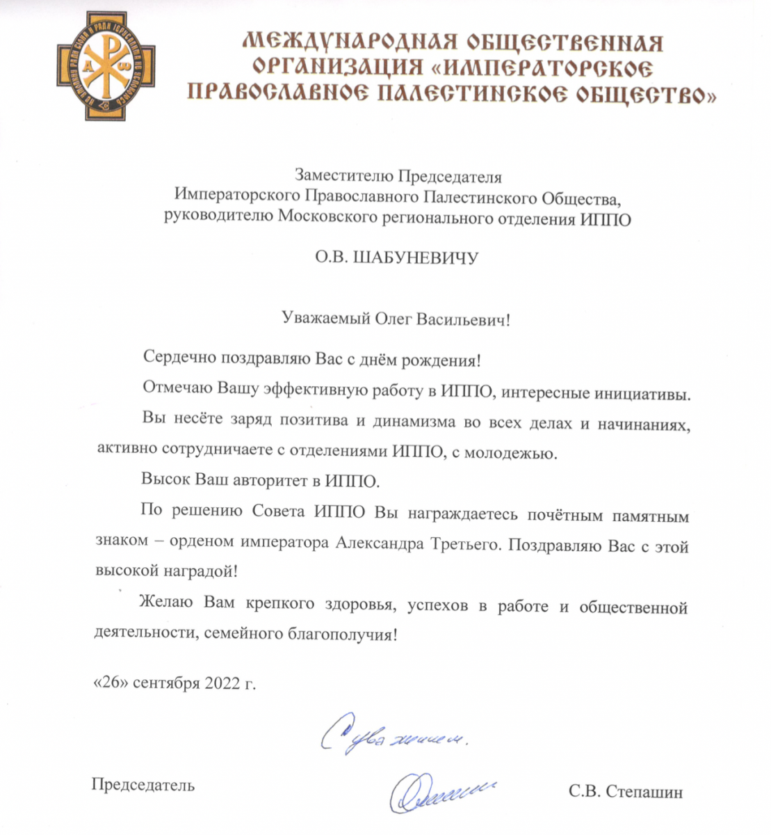 26 сентября день рождения отмечает руководитель Московского регионального отделения Общества, заместитель Председателя ИППО Олег Шабуневич.