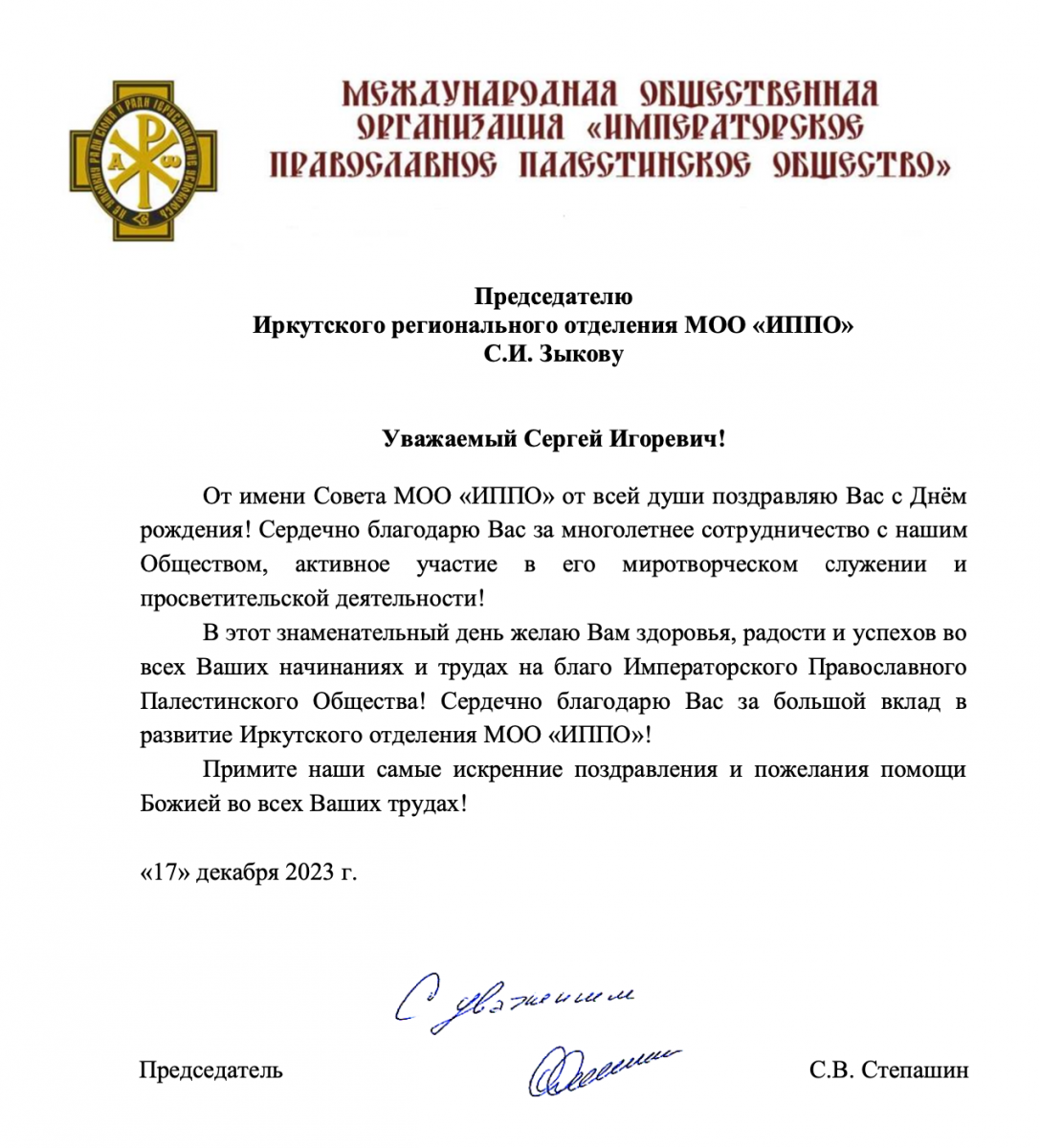 17 декабря отмечает день рождения руководитель Иркутского отделения ИППО Сергей Зыков.