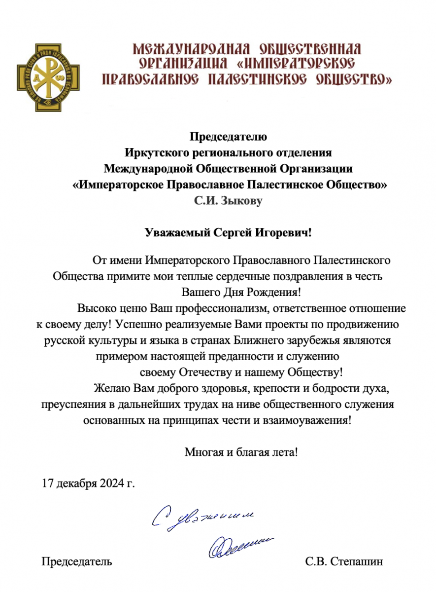17 декабря отмечает день рождения руководитель Иркутского отделения ИППО Сергей Зыков.