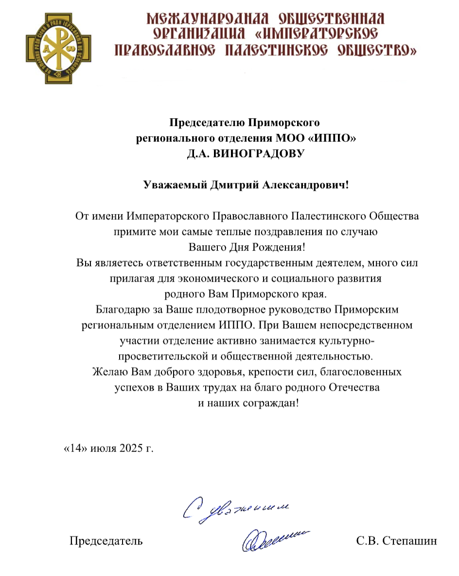 14 июля день рождения отмечает руководитель Приморского отделения ИППО Дмитрий Виноградов.