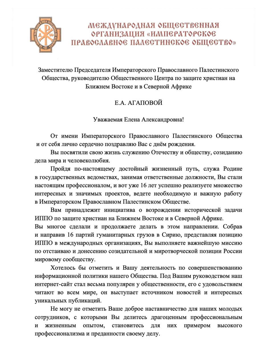 12 ноября день рождения отмечает заместитель Председателя ИППО, руководитель Общественного Центра ИППО по защите христиан на Ближнем Востоке и в Северной Африке, общественный деятель Елена Агапова.
