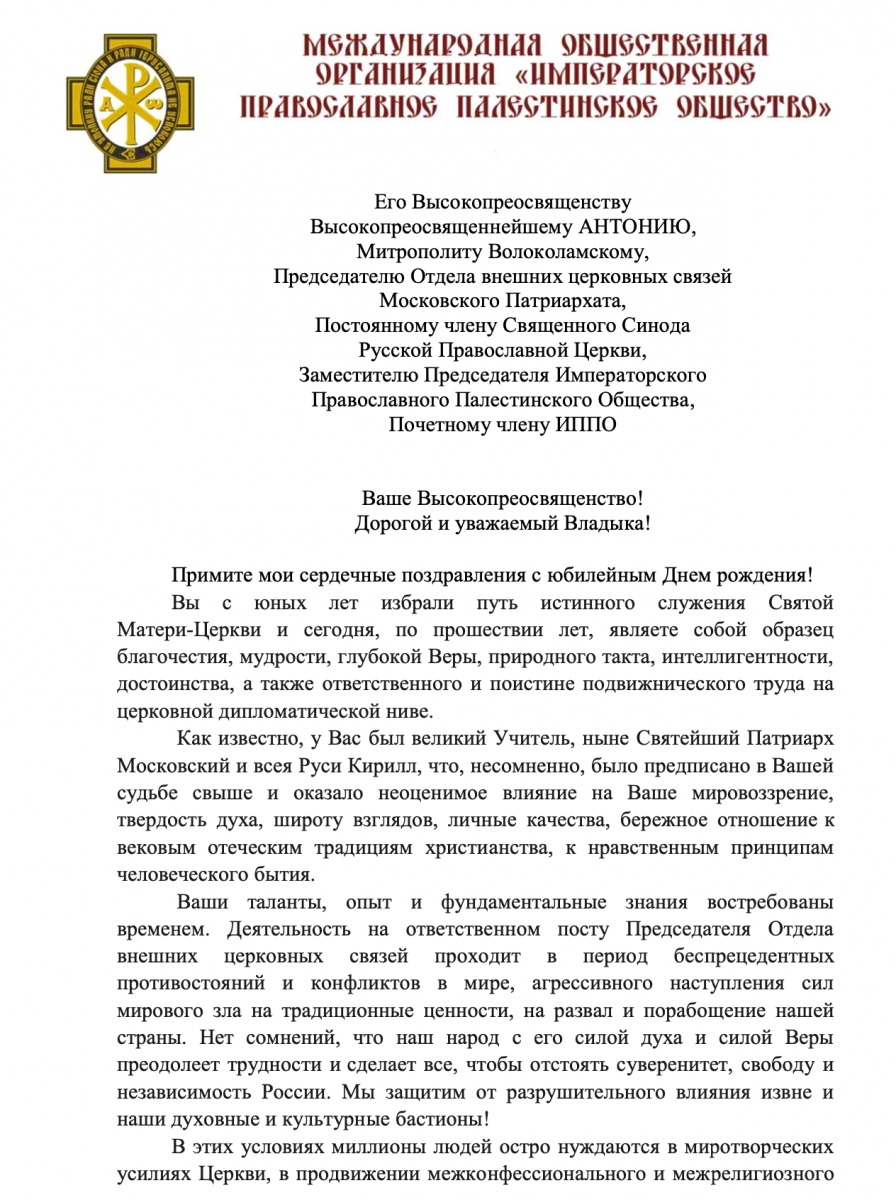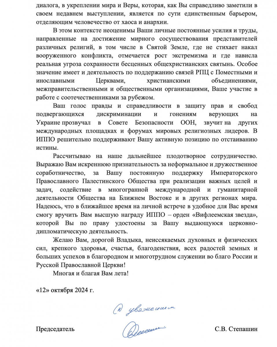 Поздравление в адрес владыки Антония направил Председатель ИППО Сергей Степашин.